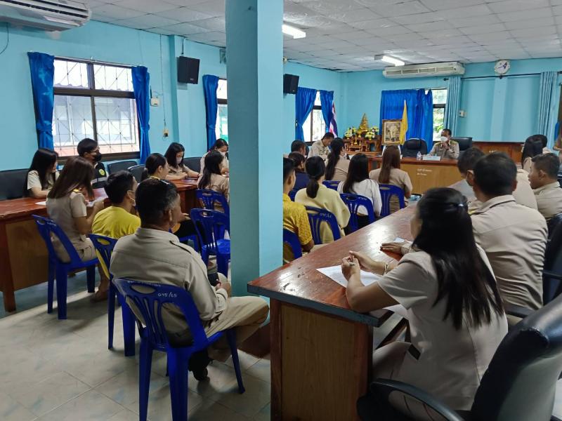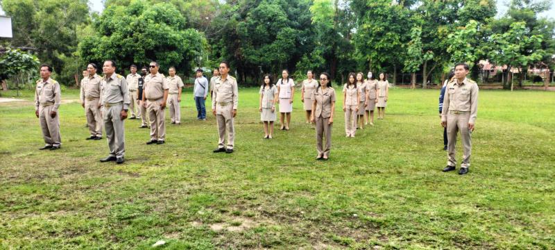 ร่วมกันเข้าแถวเคารพธงชาติประจำเดือน กรกฎาคม และประชุมประจำเดือนเพื่อมอบนโยบายในการปฏิบัติงาน แก่พนักงานองค์การบริหารส่วนตำบลสร้างนกทา