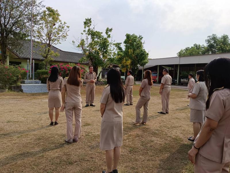ร่วมกันเข้าแถวเคารพธงชาติประจำเดือน เมษายน และประชุมประจำเดือนเพื่อมอบนโยบายในการปฏิบัติงาน แก่พนักงานองค์การบริหารส่วนตำบลสร้างนกทา (11 ภาพ)