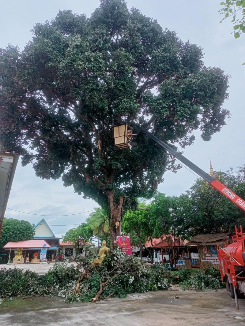 นำรถน้ำอเนกประสงค์ออกตัดกิ่งไม้ในบริเวณวัดหนองแฝก ตำบลสร้างนกทา อำเภอเมือง จังหวัดอำนาจเจริญ