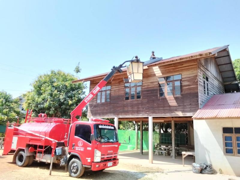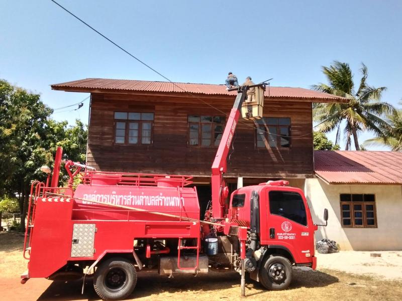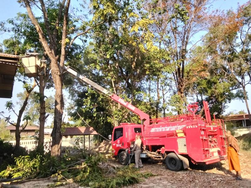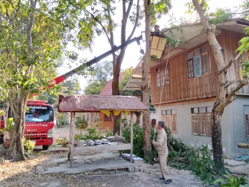 งานป้องกันสาธาารณภัย สำนักปลัด ออกตัดกิ่งไม้วัดหนองขาม และซ่อมแซมหลังคาบ้านของประชาชน หมู่ที่ 3 ที่เกิดจากเหตุวาตภัย