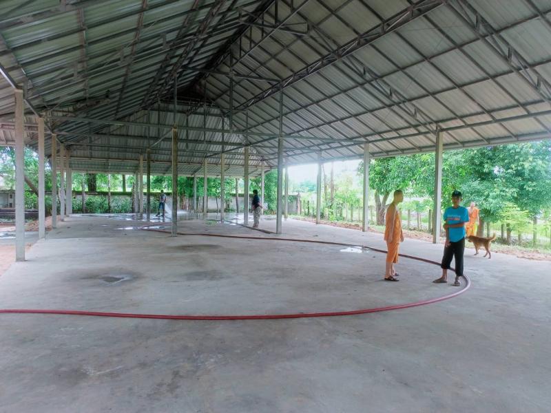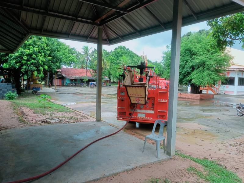 นำรถน้ำอเนกประสงค์ ล้างพื้นคอนกรีตศาลาวัดหนองแฝก ตำบลสร้างนกทา อำเภอเมือง จังหวัดอำนาจเจริญ