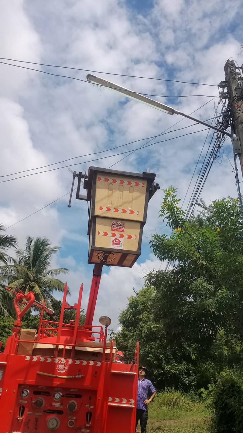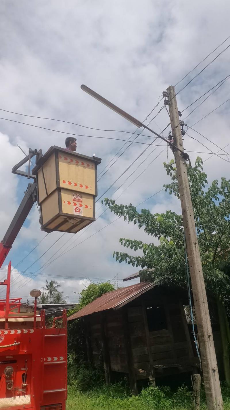 ซ่อมแซมไฟฟ้าสาธารณะภายในหมู่บ้านในเขตพื้นที่ตำบลสร้างนกทา